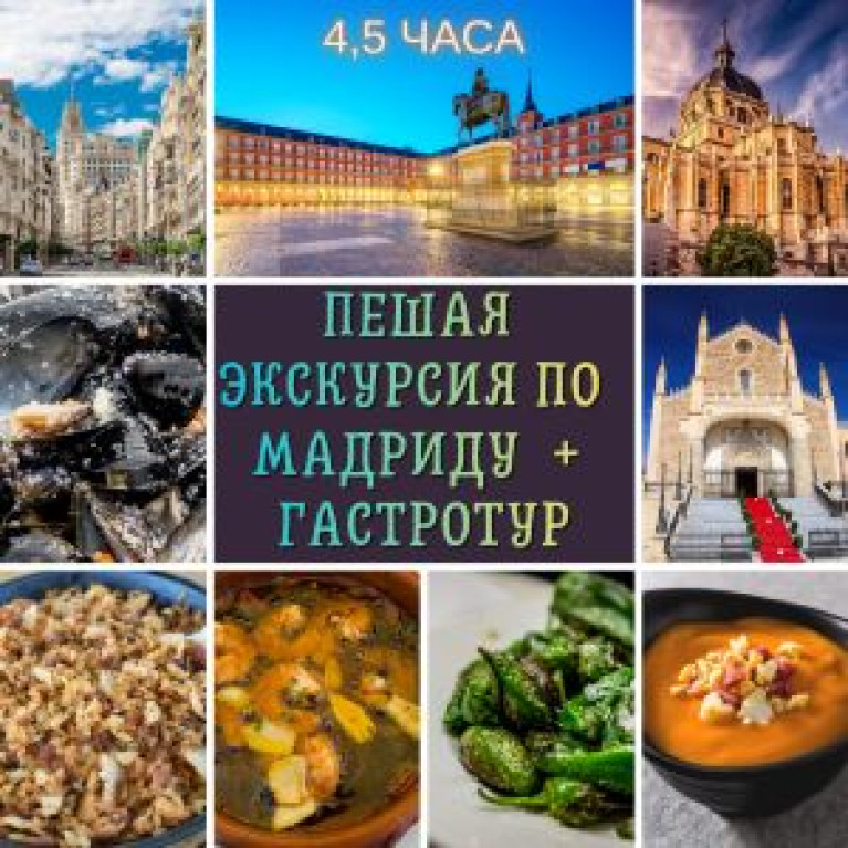 Авторский маршрут экскурсии, продуманный по форме и по духу, созданный взглядом человека, который много лет живёт в столице. Экскурсия идёт в два этапа. Сначала гуляем по историческому центру Мадрида два часа. Я хорошо знаю эти улицы, скрытые дворики, а также площади, дворец, собор и другие храмы. Хожу по ним и возле них с 1999 года и делюсь всем, что успел узнать за это время. Затем начинается гастротур, который длится примерно 2,5 - 3 часа.